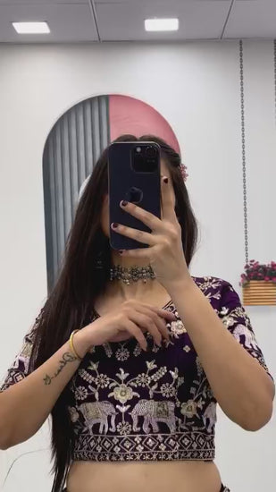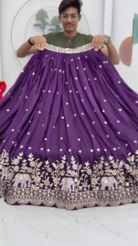 Celebrate the festive season in timeless elegance with this exquisite lehenga choli set, crafted in rich Vichitra silk for a luxurious feel. The choli is adorned with heavy thread and sequin embroidery, beautifully detailed to create a refined festive look, while the soft micro cotton lining ensures comfort throughout the day. The lehenga features matching heavy embroidery with a grand 3.5-meter flair and attached canvas patta, giving it a graceful fall and stunning volume. Completing the ensemble is a coordinated Vichitra silk dupatta, highlighted with heavy embroidery and sequin work, perfect for weddings, festivals, and special occasions.